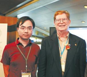 彭影杰和诺贝尔物理学奖得主乔治·斯穆特教授在一起。 少年