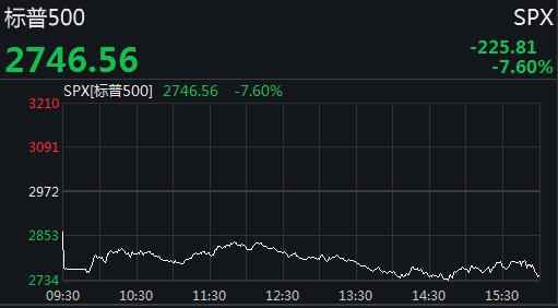 截至收盘,道指收盘下跌2013.76点,跌幅7.79%,报23851.02点;纳指跌624.94点,跌幅7.29%,报7950.68点;标普500指数跌225.81点,跌幅7.60%,报2746.56点。
